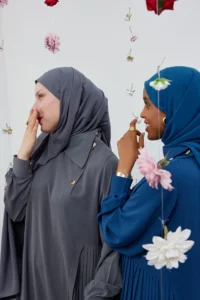 - Luxurious abaya with a distinctive neckline and waterproof golden snap buttons.